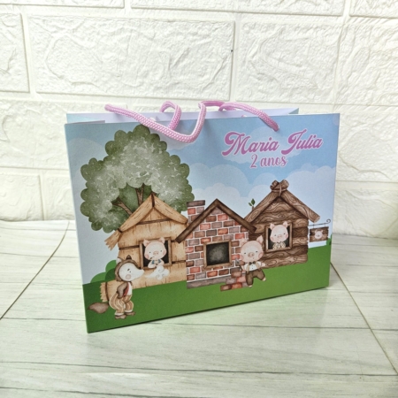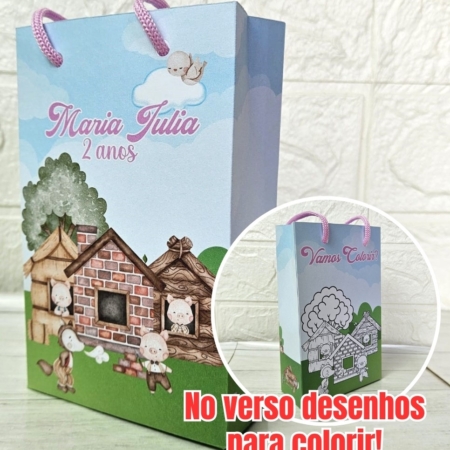 • Sacola Média Personalizada 3 Porquinhos/Lembrancinha/Festa Infantil