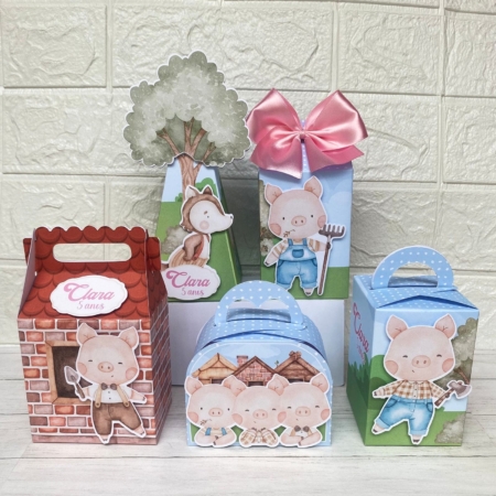 • Kit Caixas Simples 3 Porquinhos Personalizadas/Lembrancinha/Festa Infantil/Aniversário