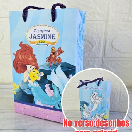 • Sacola Média Personalizada Ariel Pequena Sereia/Lembrancinha/Festa Infantil