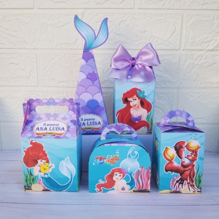 • Kit Caixas Simples Ariel Pequena Sereia Personalizadas/Lembrancinha/Festa Infantil/Aniversário