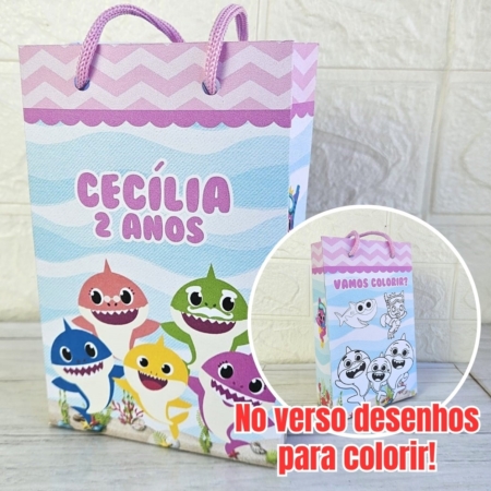• Sacola Pequena Personalizada Baby Shark Menina/Lembrancinha/Festa Infantil