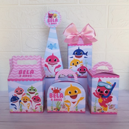 • Kit Caixas Simples Baby Shark Menina Personalizadas/Lembrancinha/Festa Infantil/Aniversário