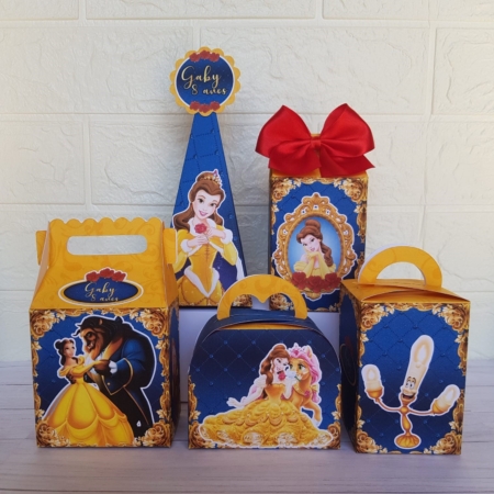 • Kit Caixas Simples Bela e a Fera Personalizadas/Lembrancinha/Festa Infantil/Aniversário
