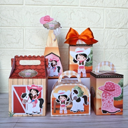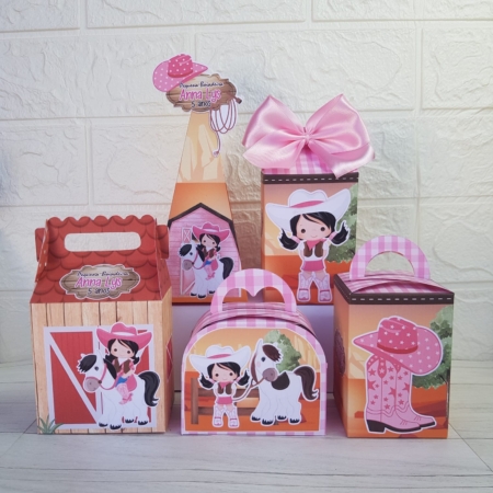 • Kit Caixas Simples Boiadeira Rosa Personalizadas/Lembrancinha/Festa Infantil/Aniversário