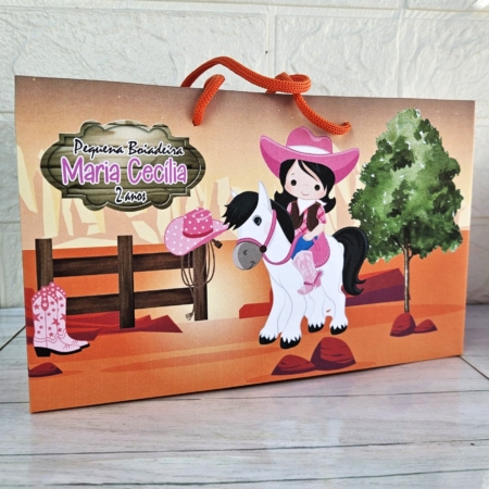 • Sacola Média Personalizada Boiadeira/Lembrancinha/Festa Infantil