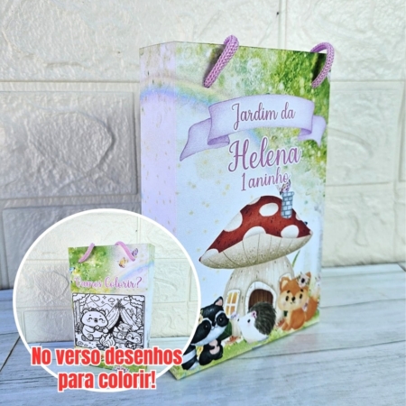 • Sacola Média Personalizada Bosque Encantado Rosa/Lembrancinha/Festa Infantil