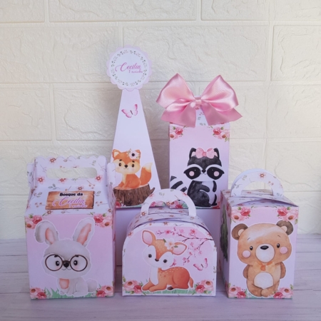 • Kit Caixas Luxo Bosque Encantado Rosa Personalizadas/Lembrancinha/Festa Infantil/Aniversário