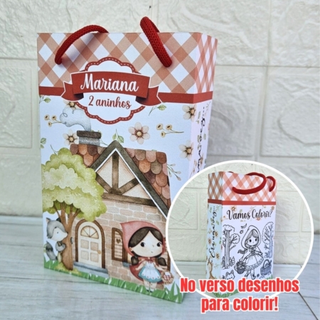 • Sacola Pequena Personalizada Chapéuzinho Vermelho Aquarela/Lembrancinha/Festa Infantil