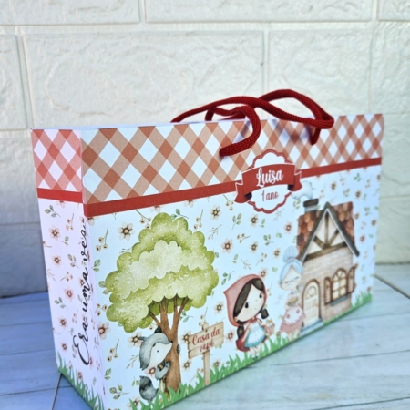 • Sacola Média Personalizada Chapéuzinho Vermelho Aquarela/Lembrancinha/Festa Infantil