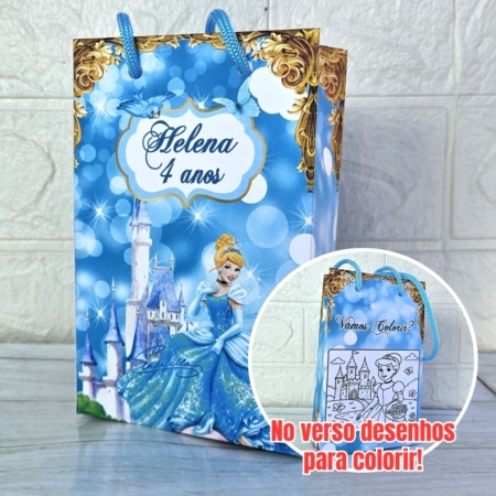 • Sacola Média Personalizada Cinderela/Lembrancinha/Festa Infantil