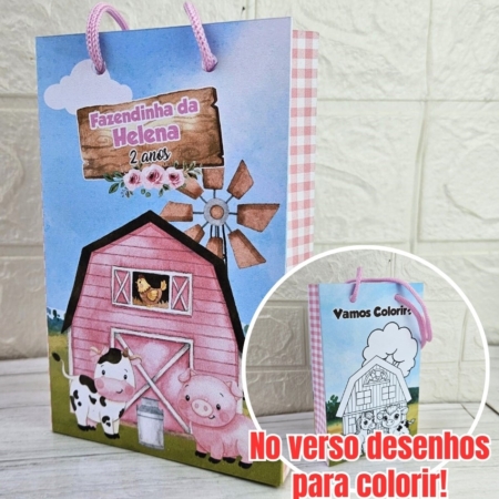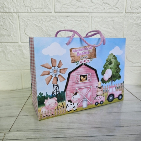 • Sacola Média Personalizada Fazendinha Rosa/Lembrancinha/Festa Infantil