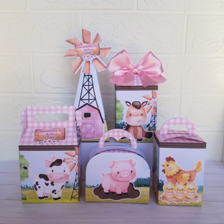 • Kit Caixas Simples Fazendinha Rosa Personalizadas/Lembrancinha/Festa Infantil/Aniversário