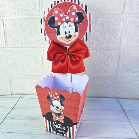 • Centro de Mesa Minnie Vermelha – Cachepô Personalizado para Aniversário Infantil