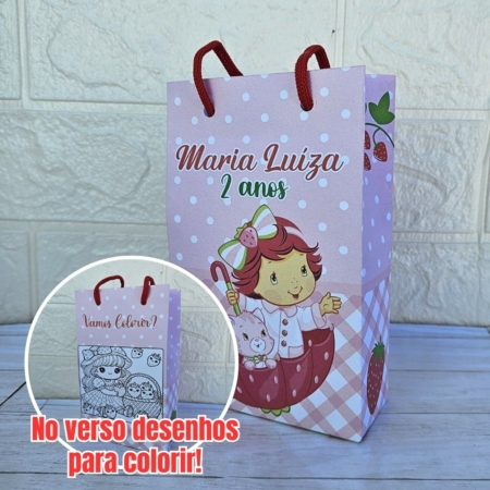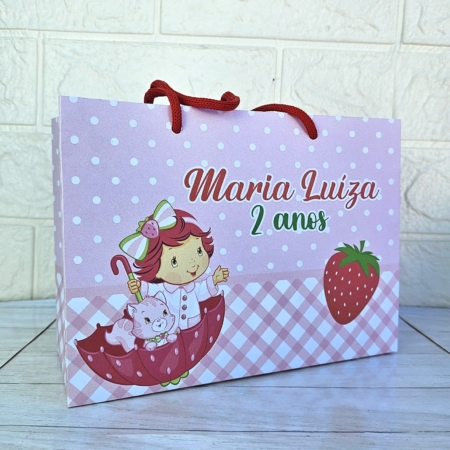 • Sacola Média Personalizada Moranguinho/Lembrancinha/Festa Infantil