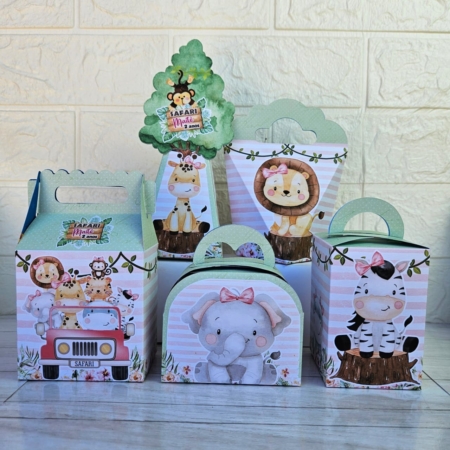 • Kit Caixas Simples Safari Menina/Lembrancinha/Festa Infantil/Aniversário