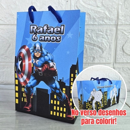 • Sacola Pequena Personalizada Capitão América/Lembrancinha/Festa Infantil