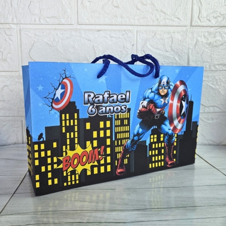 • Sacola Média Personalizada Capitão América /Lembrancinha/Festa Infantil