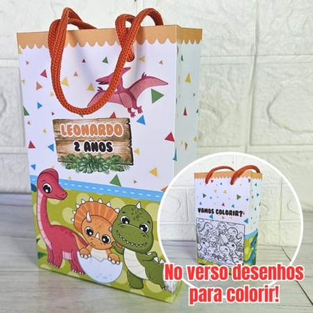 • Sacola Média Personalizada Dino Baby/Lembrancinha/Festa Infantil