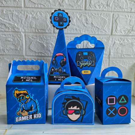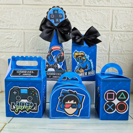 • Kit Caixas Clássicas 3D Gamer Menino Personalizadas/Lembrancinha/Festa Infantil/Aniversário