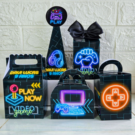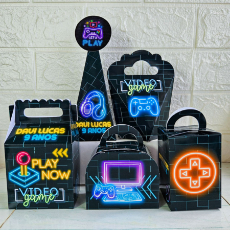 • Kit Caixas Simples Gamer Neon Personalizadas/Lembrancinha/Festa Infantil/Aniversário