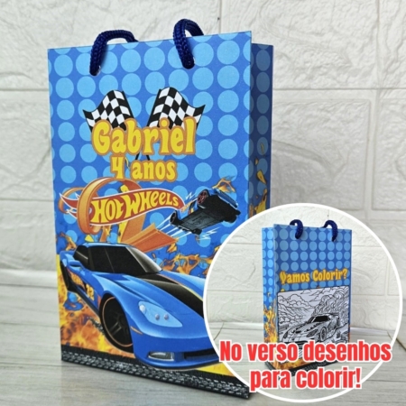 • Sacola Média Personalizada Hot Wheels/Lembrancinha/Festa Infantil
