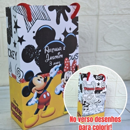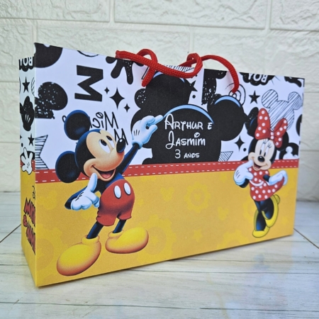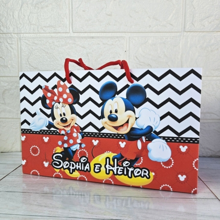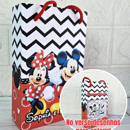 • Sacola Média Personalizada Minnie e Mickey Mouse/Lembrancinha/Festa Infantil