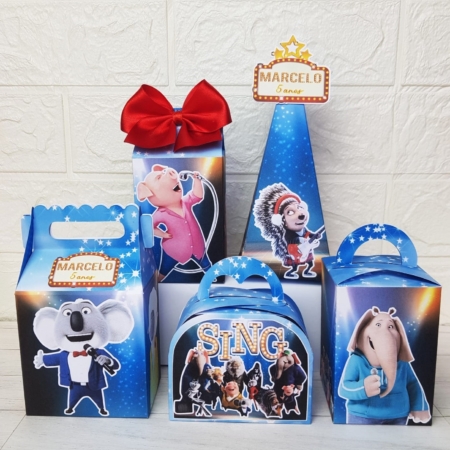 • Kit Caixas Simples Sing Menino Personalizadas/Lembrancinha/Festa Infantil/Aniversário
