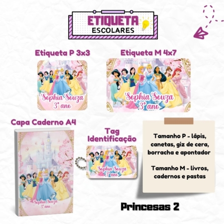 • Kit Etiquetas Escolares Princesas 2 Personalizadas