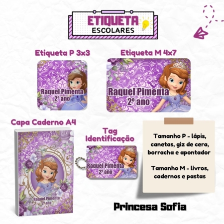 • Kit Etiquetas Escolares Princesa Sofia Personalizadas