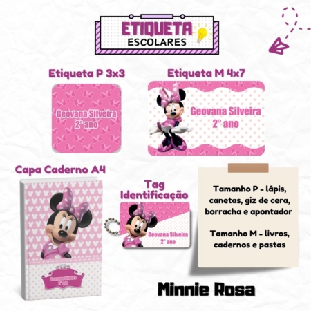 • Kit Etiquetas Escolares Minnie Rosa Personalizadas
