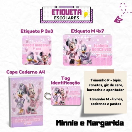 • Kit Etiquetas Escolares Minnie e Margarida Personalizadas