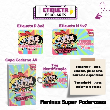 • Kit Etiquetas Escolares Meninas Super Poderosas Personalizadas