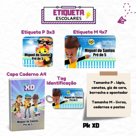 • Kit Etiquetas Escolares Pk Xd Menino Personalizadas