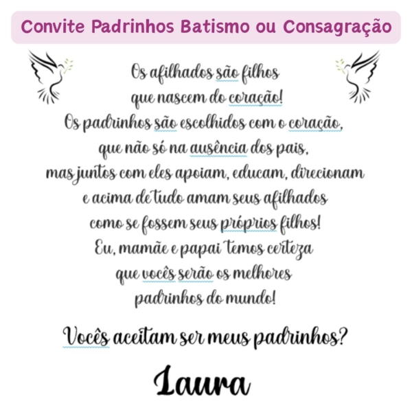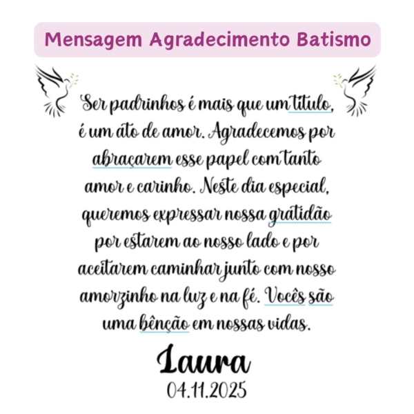Convite ou mensagem de agradecimento de padrinhos ou madrinhas para Batismo