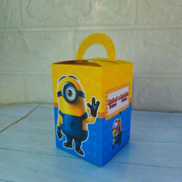 Caixinhas personalizadas no tema da sua festa + nome e idade da criança, conforme a quantidade escolhida: