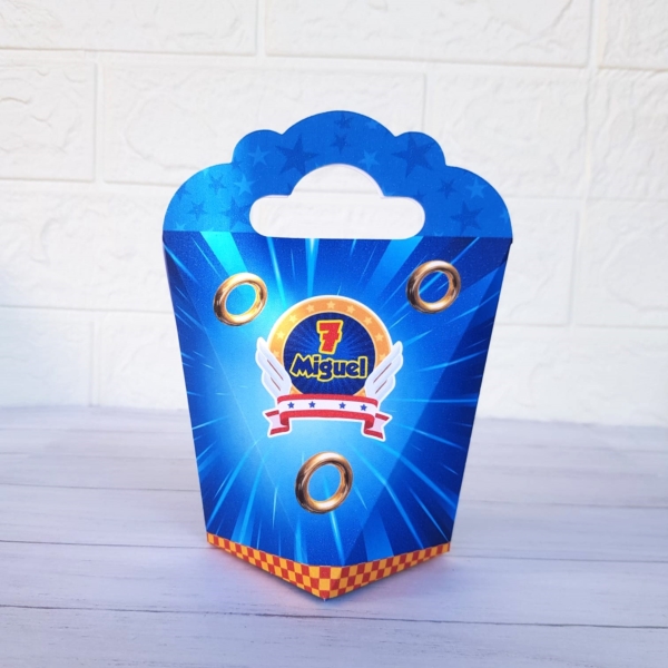 Caixinhas personalizadas no tema da sua festa + nome e idade da criança, conforme a quantidade escolhida: