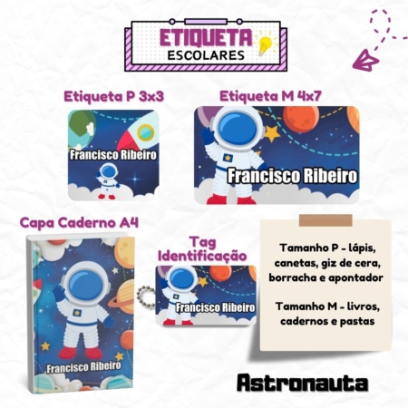 • Kit Etiquetas Escolares Astronauta Personalizadas