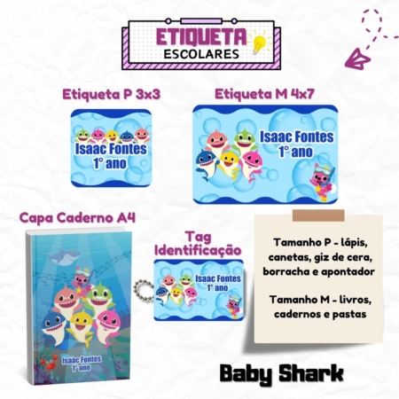 • Kit Etiquetas Escolares Baby Shark Personalizadas