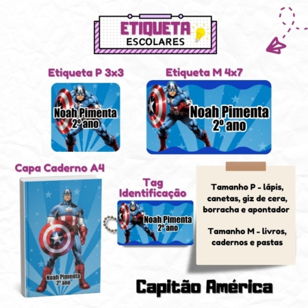 • Kit Etiquetas Escolares Capitão América Personalizadas