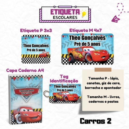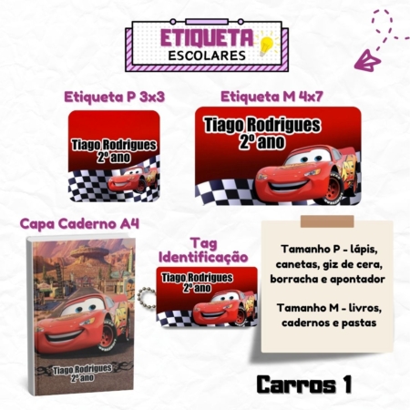 • Kit Etiquetas Escolares Carros 2 Personalizadas