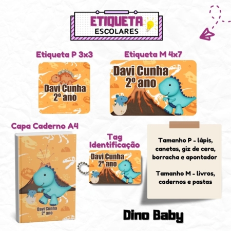 • Kit Etiquetas Escolares Dino Baby Personalizadas
