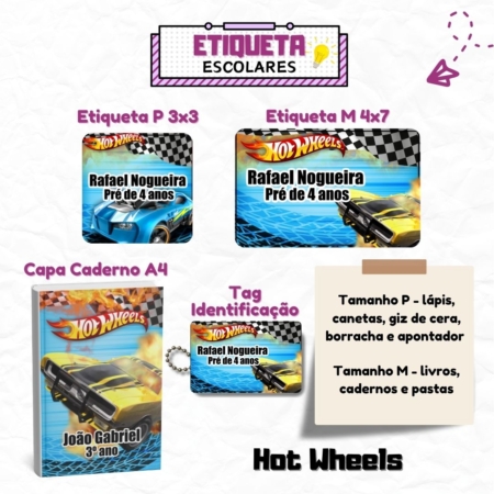 • Kit Etiquetas Escolares Hot Weels Personalizadas