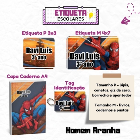 • Kit Etiquetas Escolares Homem Aranha Personalizadas