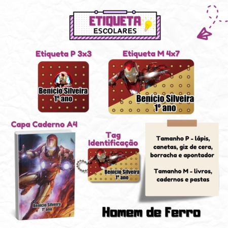 • Kit Etiquetas Escolares Homem De Ferro Personalizadas