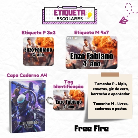 • Kit Etiquetas Escolares Free Fire Personalizadas