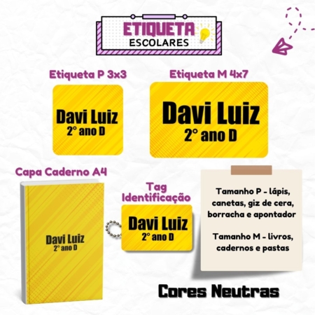 • Kit Etiquetas Escolares Cores Neutras Personalizadas