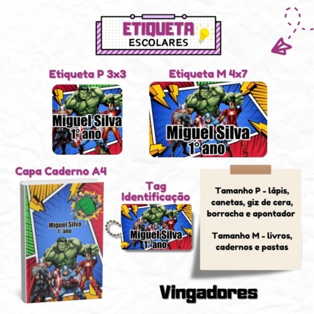 • Kit Etiquetas Escolares Vingadores – Super Heróis – Avengers Personalizadas