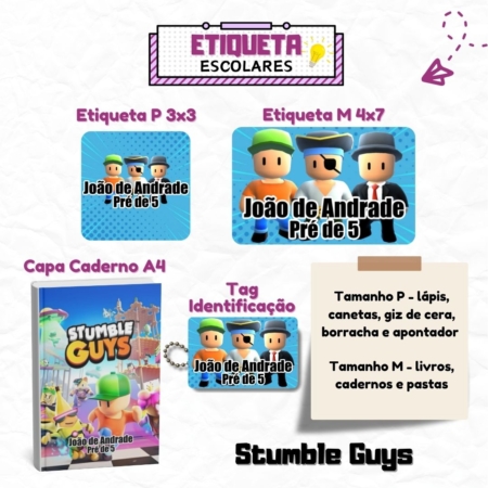 • Kit Etiquetas Escolares Stumble Guys Personalizadas