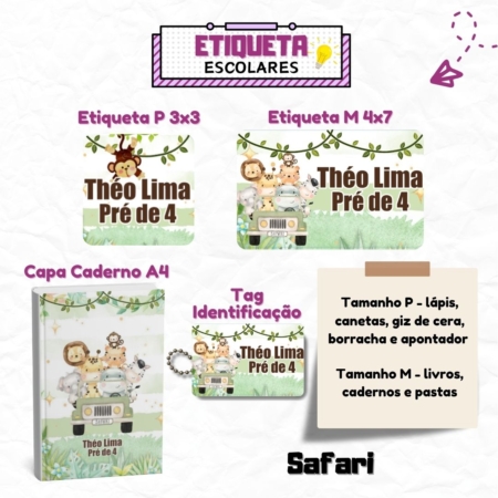 • Kit Etiquetas Escolares Safari Personalizadas