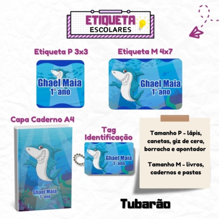 • Kit Etiquetas Escolares Tubarão Personalizadas